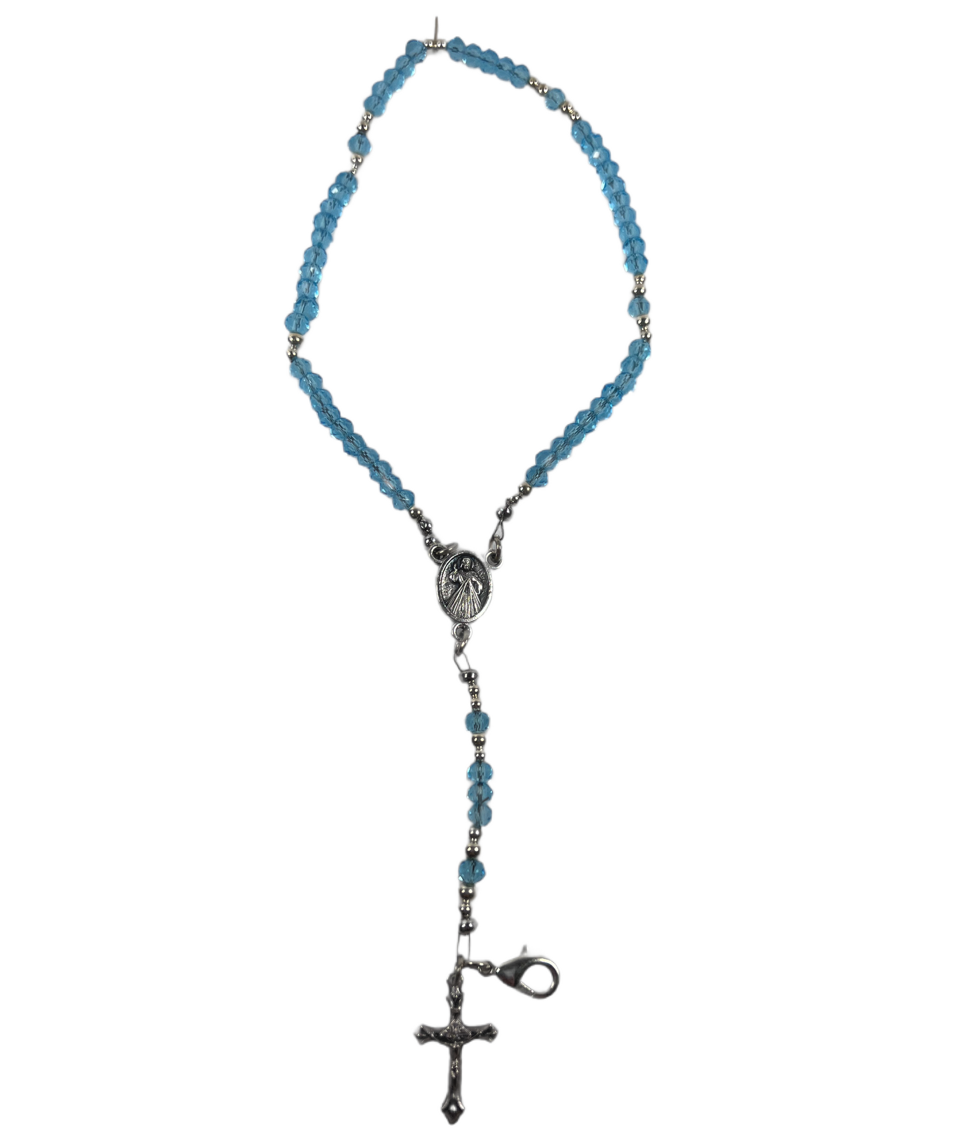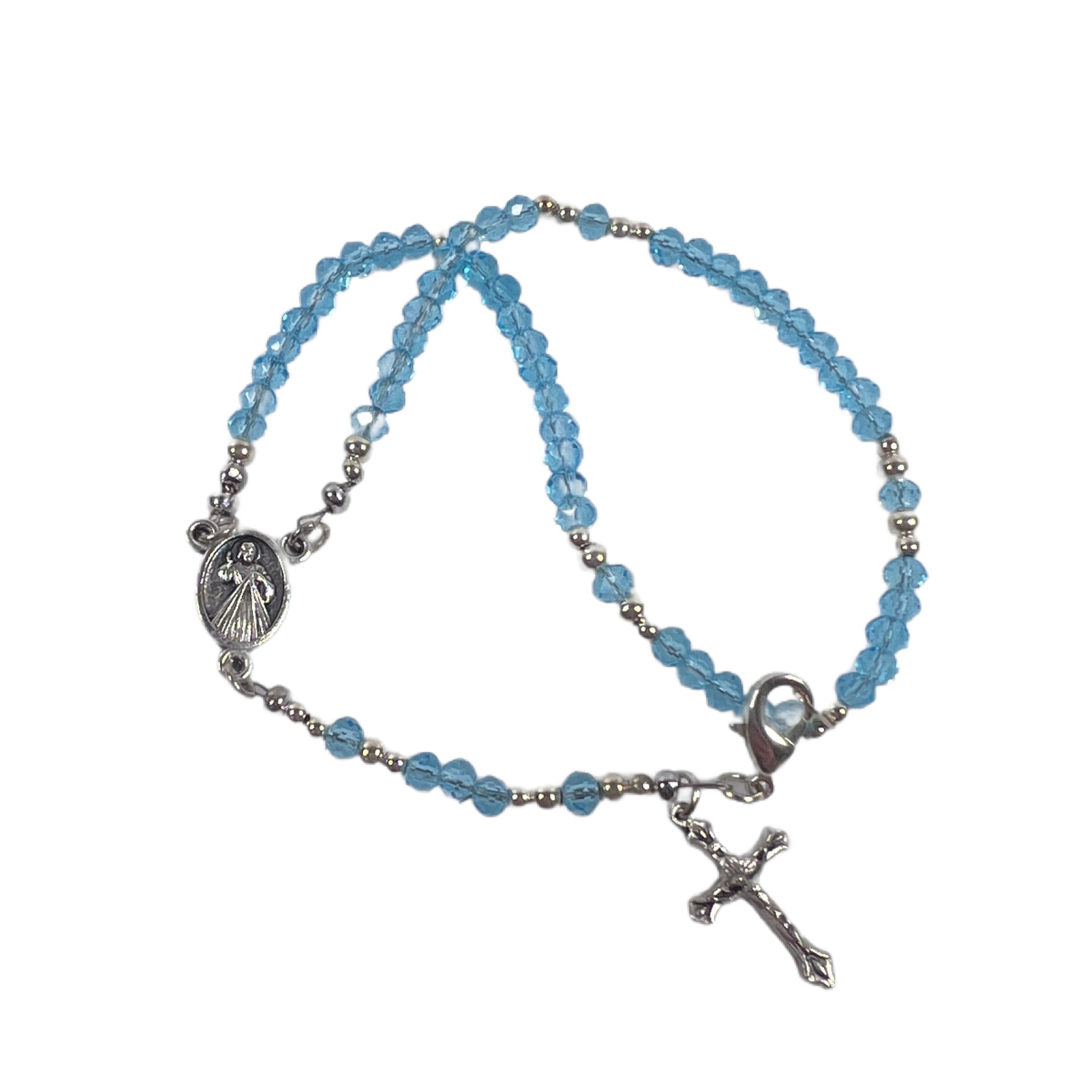 Miraculous Medal Rosary Bracelet, Light Blue Crystal & Silver