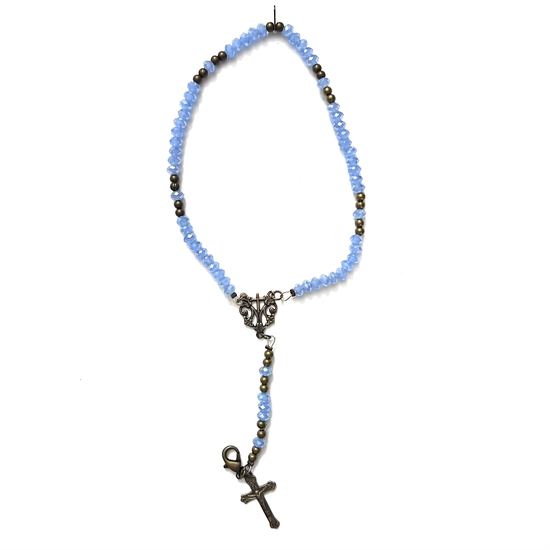 Marian Auspice Rosary Bracelet, Light Blue & Bronze