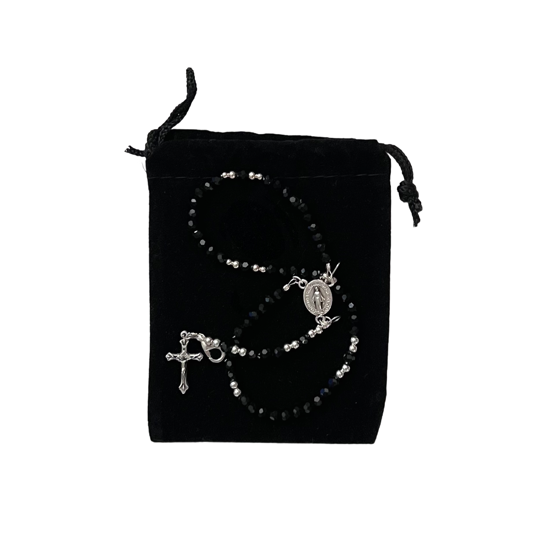 Enhance your spiritual journey with this exquisite Silver Miraculous Medal Rosary Bracelet, featuring a Silver Crucifix, and a Black Crystals. Crafted with care and reverence, this sacred piece symbolize faith, prayer, and holiness. Elevate your daily devotions with this elegant collection.