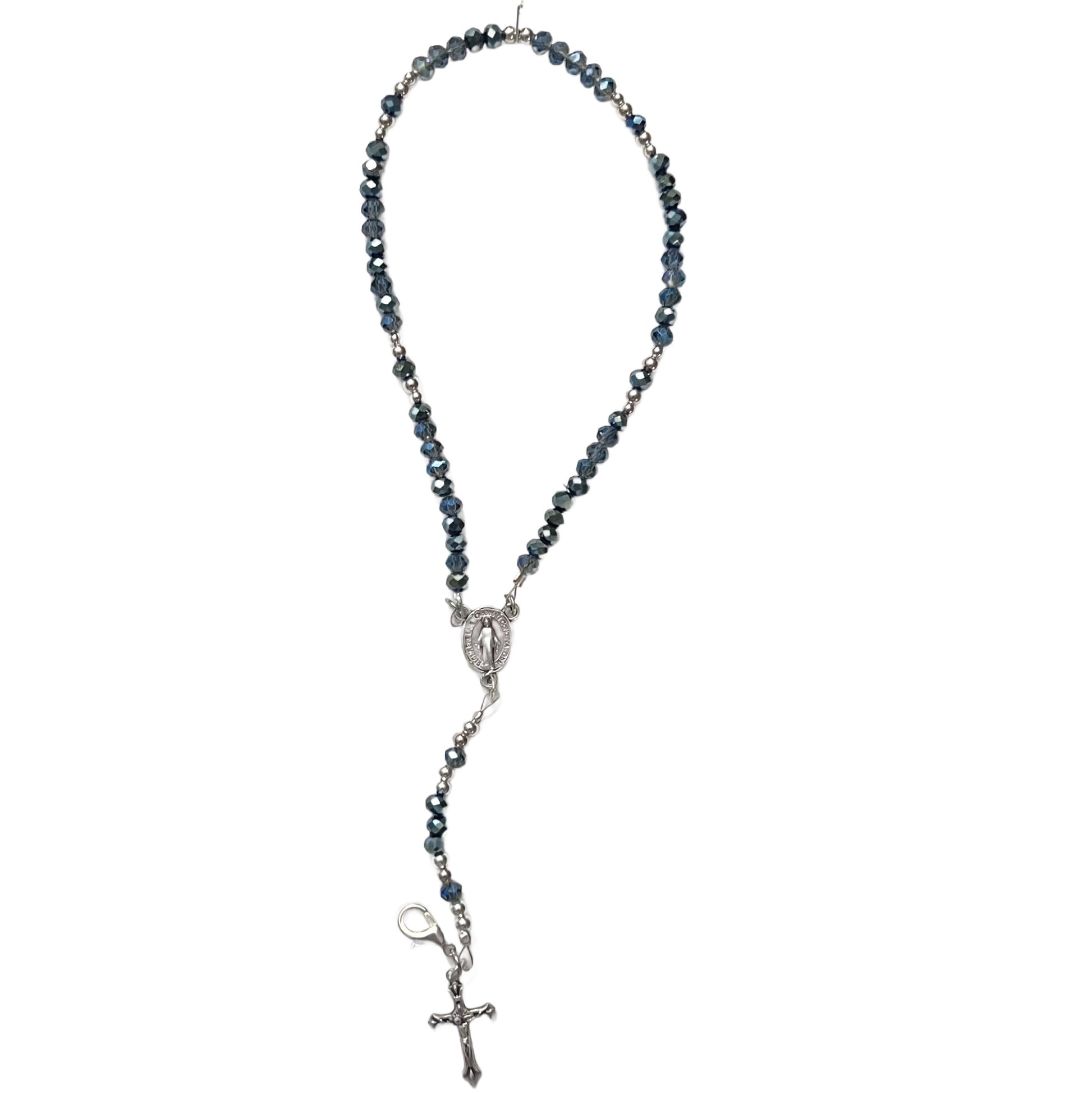 Experience the divine connection with our exquisite dark Blue Crystal, Silver Crucifix & Full Color Our Lady of Grace Center Rosary Bracelet. Crafted with high-quality materials, this elegant piece carries spiritual significance and grace, perfect for prayer and reflection. Elevate your spiritual journey with this Holy accessory today.
