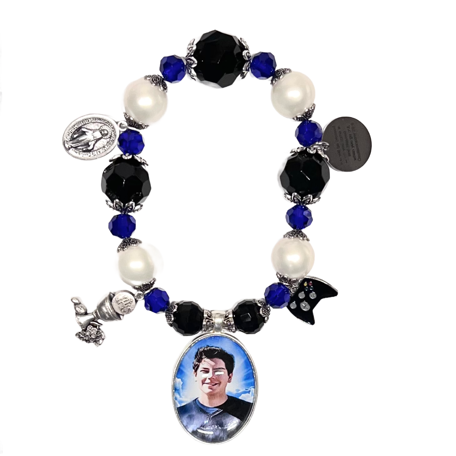 Experience a meaningful welcome with the Saint Carlo Acutis Door Blessing. Featuring elegant black, blue, and white beads, this piece combines spiritual significance with refined design. Perfectly suited for any entrance, it serves as a thoughtful guardian, inviting peace and protection into your home with subtle sophistication.